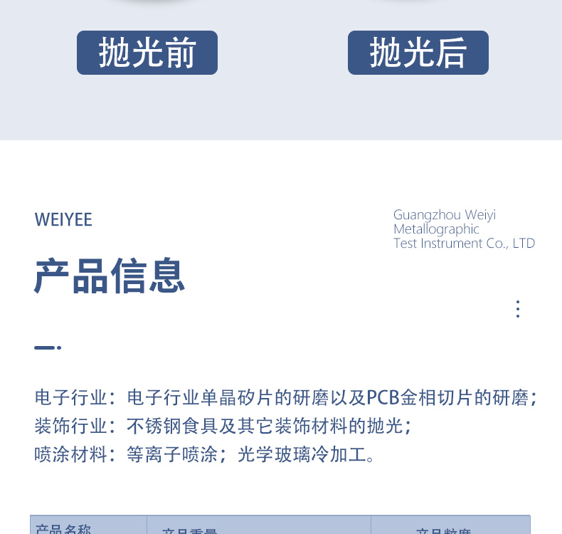 磨抛机、切割机、显微镜、镶嵌机、硬度计、试验机、试验耗材类等产品。